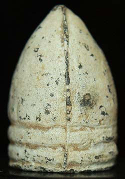 For your consideration one unlisted 0.69 caliber bullet with a very low base first ring. I see no evidence of any carving or cutting on this bullet. You will find this bullet to be in excellent dug condition. The patina is a real nice, thick-slick white color. Heavy mold seams can be seen on both sides of this bullet. Mold seams can be seen in all 3 bullet photos..photo 4 see extreme right of photo. The cavity is a cone. Measures about 0.68 x 0.99 inches. Dug from the Corinth - Shiloh area. I saw Army of TN relics sell this same bullet 3-4 weeks ago. His bullet was from Shiloh also. See all 4 photos.
