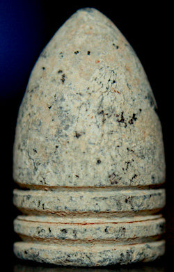For your consideration one McKee & Mason 339 Machine made for rifle musket bullet. You will find this bullet to be in excellent dug condition. The patina is a white color with black spots all mixed in...a near perfect patina. The extra ring (groove) can be seen in all 3 bullet photos..look at the middle ring. The rings are lathed into the bullets & looks like something was a little off that day..150+ years ago. A faint nose cap ring can be seen & the cavity is ogival, M&M cavity type 10. Measures about 0.69 x 1.12 inches. See all 4 photos.